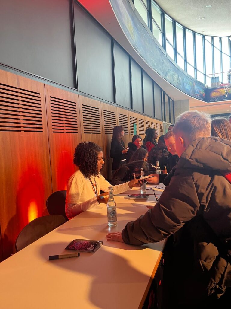 Die Klassen 7c und 7d besuchten am Dienstag im Rahmen der Berlinale das Haus der Kulturen der Welt. Der Film A Fabulosa Máquina do Tempo (Die fabelhafte Zeitmaschine) zeigt das Leben einiger Mädchen in einem brasilianischen Dorf. Darunter Manuellinha, Manu und Sophia, die über eine Zeitmaschine nachdenken und sich die Frage stellen, was sie mit ihr anfangen würden. Themen im Film sind das Erwachsenwerden und das Leben unterschiedlicher Generationen in dem sehr armen Dorf. Die Mädchen tanzen, spielen, lachen und sprechen mit ihren Müttern und Großmüttern über die Fragen, die sich sich stellen. Immer wieder geht es darum, dass sich die Mädchen ihre eigenen Träume in der Zukunft selbstbestimmt erfüllen möchten. Im Anschluss an den Film konnten der Regisseurin sowie den drei Darstellerinnenden, die aus Brasilien angereist waren, Fragen gestellt werden. Zum Schluss gab es sogar Autogramme.
