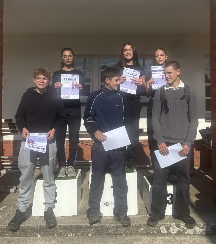 Noch dominanter war jedoch das Ergebnis der Mädchen im Jahrgang 2010. Die Plätze 1-5 gingen alle an unsere Schule. Julia (10a) gewann vor Marwa (9c), Lena (9c), Yazel (10a) und Mira (9a). Das gute Ergebnis rundete Amir (9c) mit einem tollen 7. Platz bei den Jungen im Jahrgang 2010 ab.