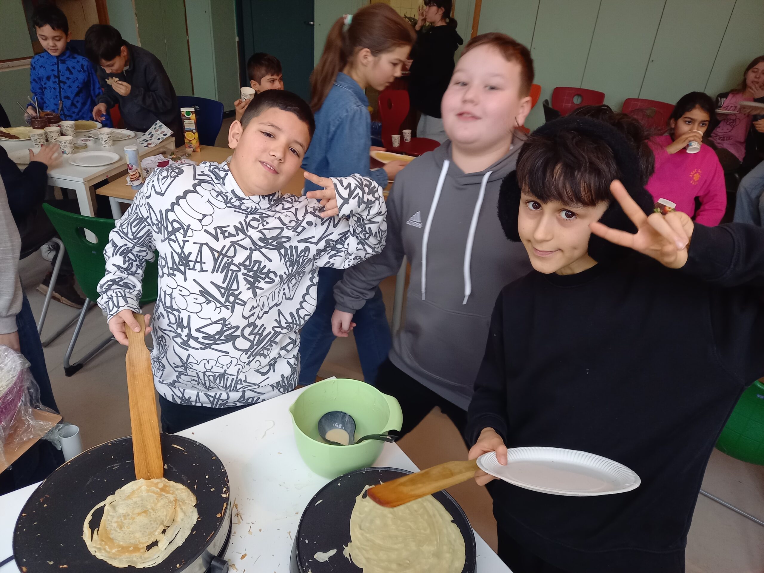 Die 5a hat vergangenen Montag die Chandeleur gefeiert und Crêpes gebacken. 40 Tage nach Weihnachten wird dieser ursprünglich christliche Feiertag in Frankreich mit dem Backen von Crêpes begangen.
